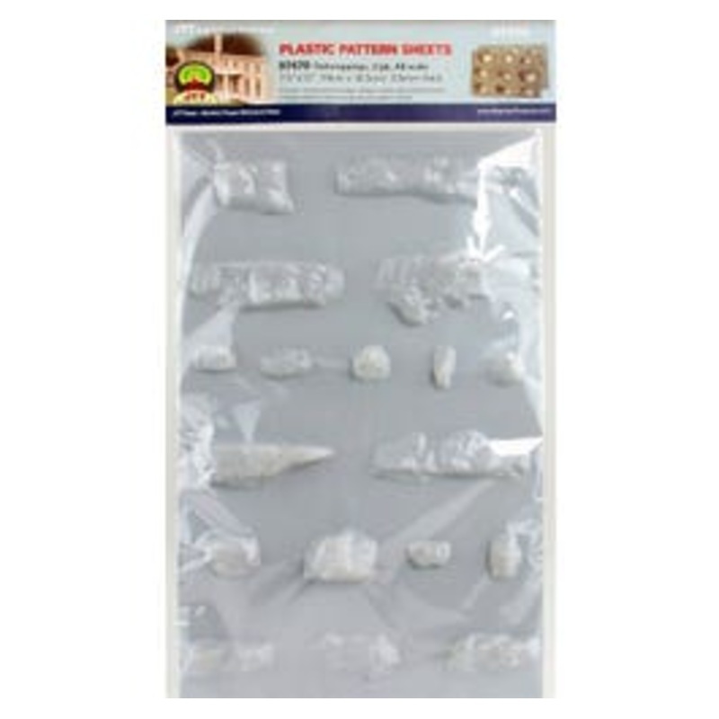 This package contains two JTT Outcroppings Plastic Pattern Sheets comes in 7.5"x12". Our complete range of embossed styrene plastic sheets can be used to create roofing, flooring, siding, rock, stone, metal plate and other architectural parts. The sheets a