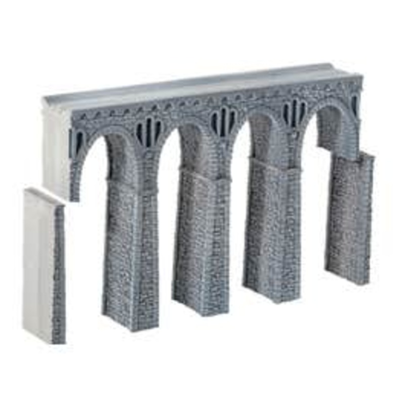 The Quarrystone Viaduct is the eye-catcher in your model railway diorama. In order to create particularly long bridge constructions, you can combine straight and curved quarrystone viaducts arbitrarily. You can also combine the viaduct with the Viaduct "Rh